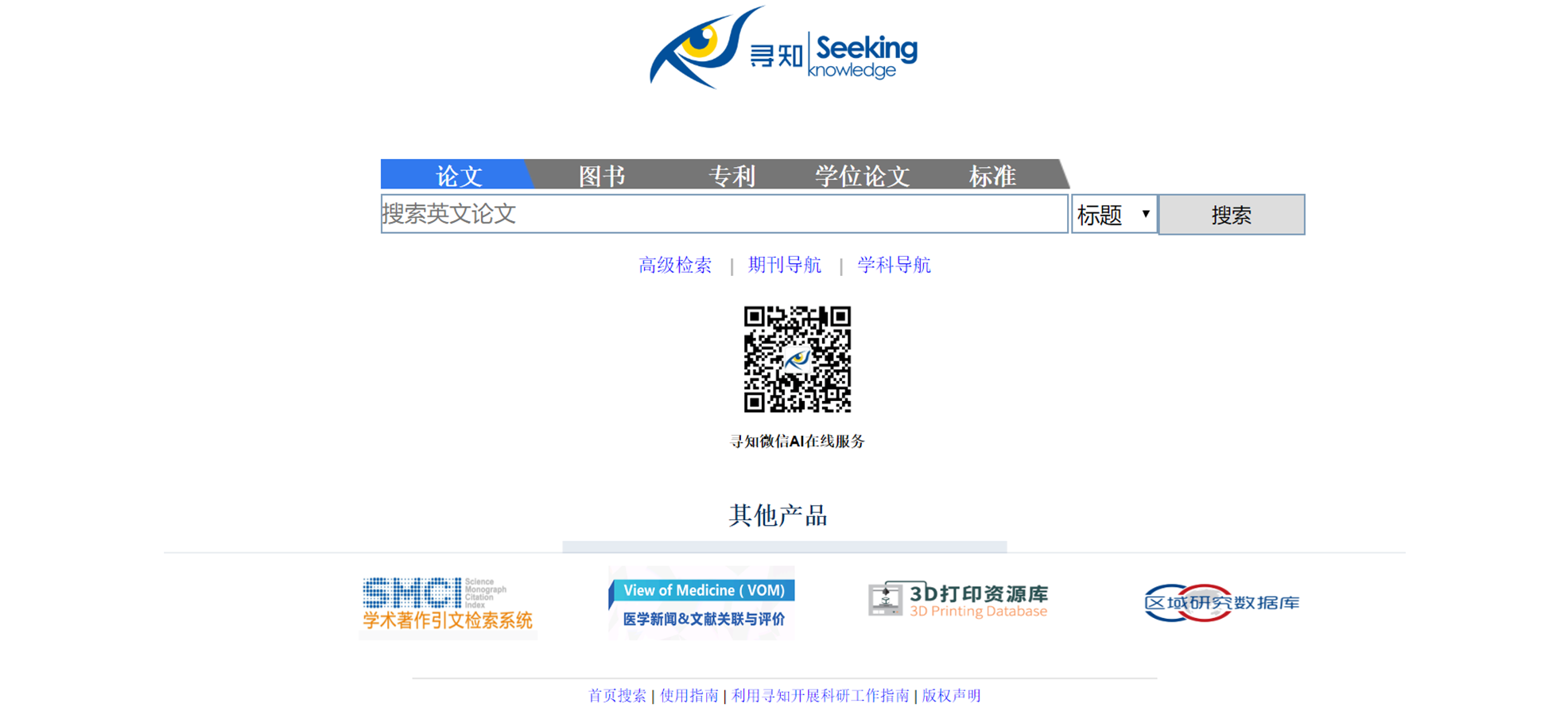 寻知学术文献数据检索平台(简称“寻知”)是一个整合了全球3000余所知名机构知识库、学科知识库、政府知识库资源、全球基金单位知识库及其他网络可寻到资源的学术文献检索和情报信息分析平台,以学术共享新理念为基础,汇集了各个学科的海量优质文献,以外文期刊论文、国际学术会议文献、国际知名科研教育机构大学学位论文、国内外专利数据、外文图书资源和标准文献为主,并以大数据分析技术和数据挖掘技术为支撑,对文献资源进行知识关联与知识挖掘,从广度和深度上揭示文献资源的更多信息,帮助读者开展从文献调研到投稿选刊的科学研究工作,方便、快捷发现所需知识和文献情报信息。